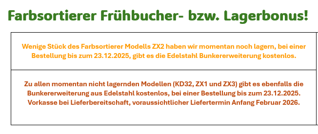 - GROTECH Walnusssortierer ZB2 AI Board u.a. zum Trennen der Walnusskerne von SchalenrestenDieser Farbsortierer, basierend auf dem Konzept eines Bandsortierers, ist speziell auf die schonende Verarbeitung von Walnüssen ausgelegte ohne Bruch zu erzeugen. Zu den herkömmlichen Funktionen des Farbsortierers verfügt dieses Modell über die DEEP LEARNING Technologie, aus diesem Grund sind die Sortierer nicht nur im Stande nach Echtfarbe und Form zu sortieren, sondern auch nach Textur.… GROTECH Walnusssortierer ZB2 AI Board u.a. zum Trennen der Walnusskerne von Schalenresten weiterlesen